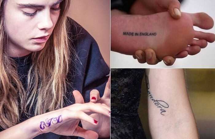 Model va aktrisa oyoq tagiga “Made in England” yozuvini tatuirovka qildirgan. Bu uning milliy kelib chiqishiga hazilomuz ishora: “Britaniyada yaratilgan hamma narsa oxir-oqibat belgilanadi.“Qora tanida o‘nlab ramziy va kulgili tatular bor-barchasidagi sher, boy orqasidagi ko‘klar,” xavotir olmang, baxtli bo‘ling” kabi yozuvlar.