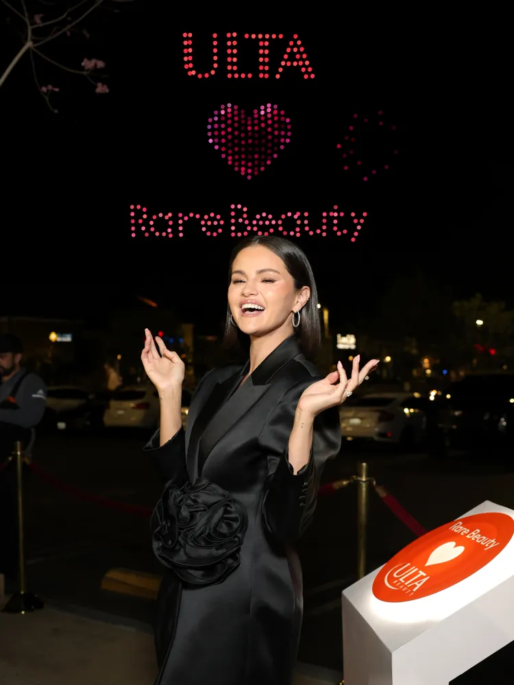 Selena Gomez o‘zining Rare Beauty kosmetik brendini Ulta Beauty do‘konlar tarmog‘ida sotuvga chiqarilishini noodatiy tarzda — dron shou yordamida nishonladi.